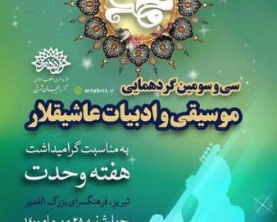 به گزارش پایگاه خبری افشاگری، همزمان با فرا رسیدن سالروز ولادت پیامبر اکرم(ص) و هفته وحدت، سی و سومین گردهمایی موسیقی و ادبیات عاشیقلار به همت حوزه هنری آذربایجان شرقی در تبریز برگزار می شود.