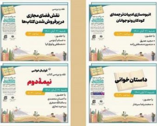 همچنین در این روز نشست «نقش فضای مجازی در پرفروش شدن کتابها» ساعت ۱۳ با حضور حسام آبنوس و مصطفی وثوقکیا برگزار خواهد شد.